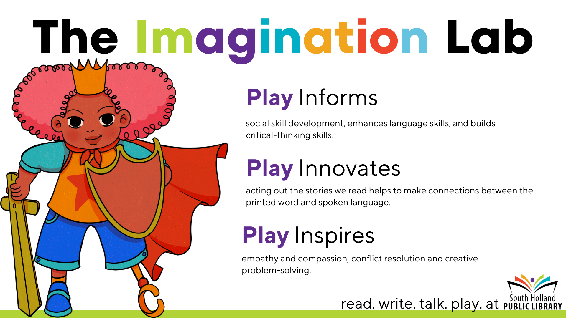 The Imagination Lab is the name for our newly renovated playspace in the Lower Level Youth area. This space will feature an ever-growing collection of hands-on interactive play options for youth and their families. We'd love for you and your little one to visit with us!