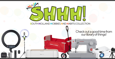 The South Holland Public Library is so excited to showcase our wonderful growing Library of Things collection. We have so much to offer for every audience. Have you stopped into the Library lately? South Holland residents can check out materials from our home goods, adventure, arts and crafts, Electronics and Technology, and Health and Wellness materials. Youth and Teens also have handy-to-go backpacks available to keep you organized and moving throughout your day. We hope you stop in and see all that our SHHH and YESSS collections have to offer.
