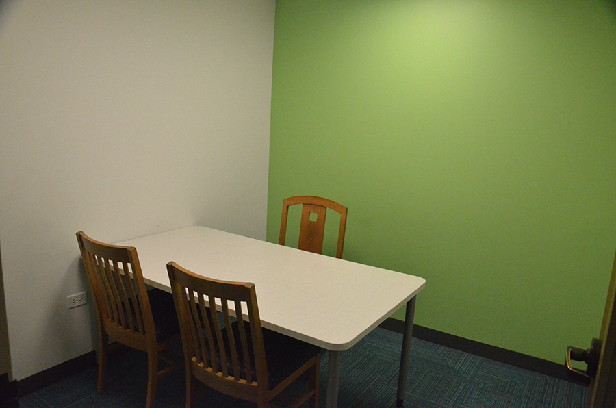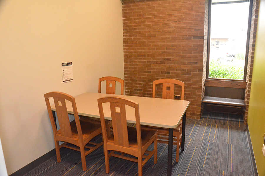 The Library has four (4) study rooms on the upper level and one (1) study room on the lower level for individuals and small groups to work together without disturbing other library users.