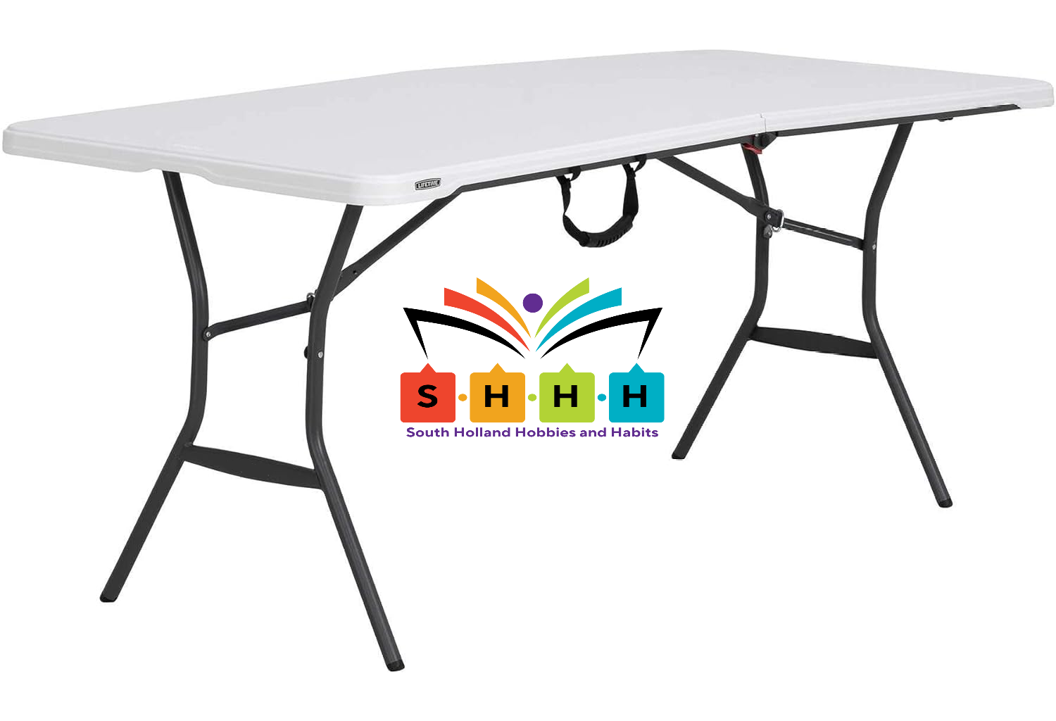 Indoor/outdoor fold-in-half table measures 60 inches x 27 inches. Table weighs 23 pounds and is equipped with a convenient carry handle for easy transport. Patron is responsible for transport to and from vehicle. Check It Out Category Home Goods Audience Adults