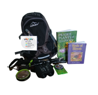 Experience the benefits of spending time in nature. Whether on a walk or hike, bird watching or learning about the prairie plants in Illinois, this backpack includes all you need. Hiking pole, binoculars, assorted Cook County Forest Preserve trail maps and more are included. Provided by AgeOptions.