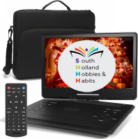 Watch movies anytime and anywhere with this portable DVD player. 14.1" swivel display screen. 4-6 hours of continuous play. Equipped with built-in speakers or has a headphone jack for audio output. Supports USB and SD cards. Power adapter and car charger included.